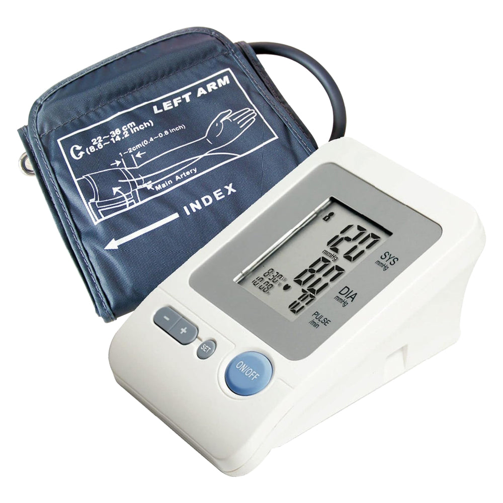 Gonfiaggio e sgonfiaggio del bracciale completamente automatici. Visualizzazione dei dati su ampio display LCD da 55x84 mm con grandi numeri per facilitare la lettura. Funzione di spegnimento automatico. Interruttore ON/OFF, misurazione pressione sanguigna e pulsazioni cardiache, circonferenza bracciale 220-360 mm. Indicatore batterie scariche, astuccio. Funziona con 4 batterie AA 1,5V incluse. Dimensioni mm 11x15,5x7 (lxpxh).