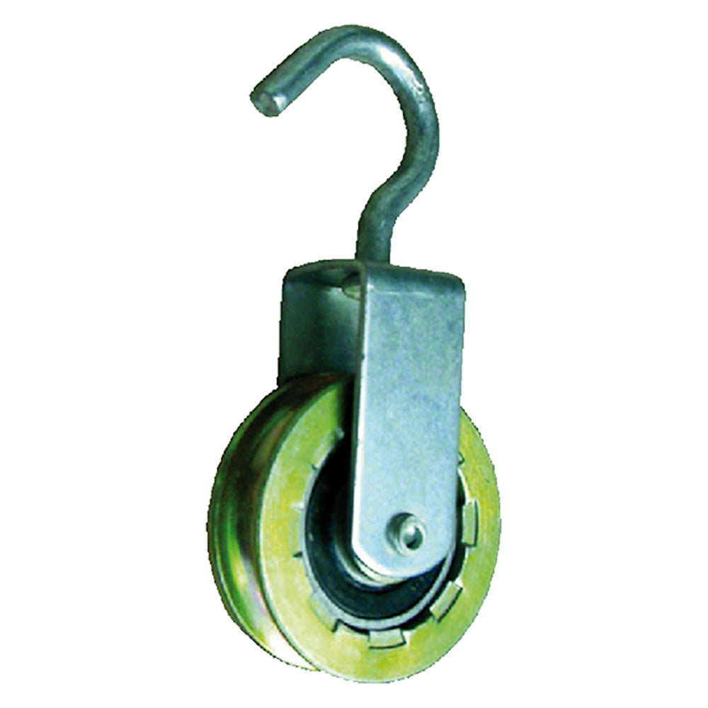 Con gancio zincato girevole e ruota in acciaio, con cuscinetto.