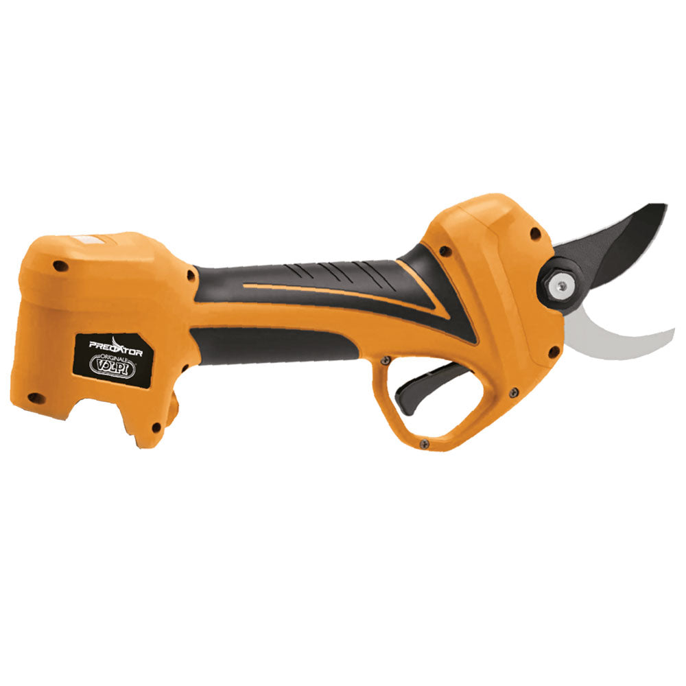 Per lavori di potatura su viti, arbusti, olivi. Batteria litio ricaricabile, lame taglio in acciaio e lama mobile intercambiabile. Motore brushless e sistema di movimento a ingranaggi. Funzione di spegnimento rapido stand-by. Funzione di taglio progressivo e taglio automatico, tre posizioni di apertura lame memorizzabili. Display conta tagli totali e parziali, indicatore livello carica. Potenza nominale 150 W, diametro massimo di taglio 32 mm. Autonomia 2-3 ore (in funzione tipo utilizzo). Peso 0,81 kg. Fornito senza batteria e caricabatteria.