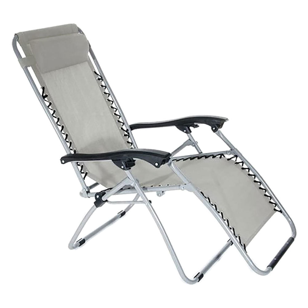 Struttura in metallo, tubolari da Ø cm 2,2. Tessuto in textilene colorato. Posizione regolabile, struttura pieghevole. Dimensioni: cm. 173x65xh.110.
