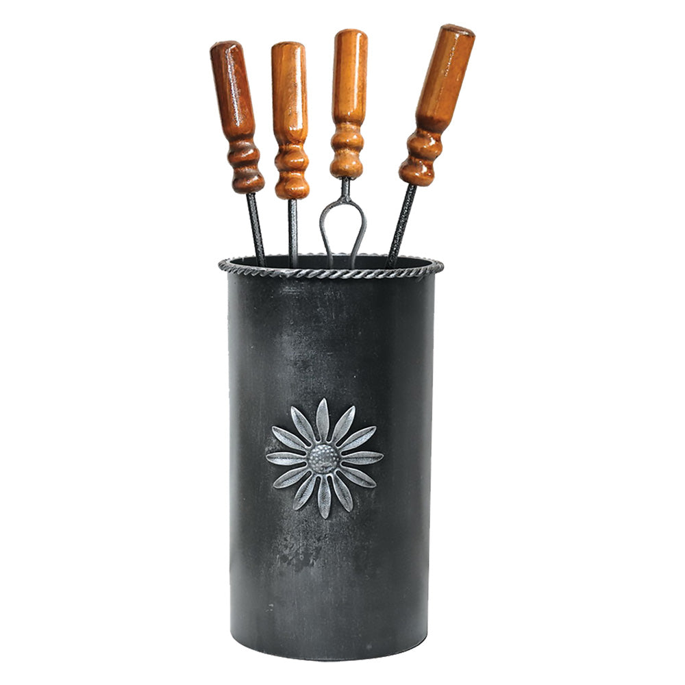 Set 4 pezzi. Con manico legno. Verniciatura a polvere.