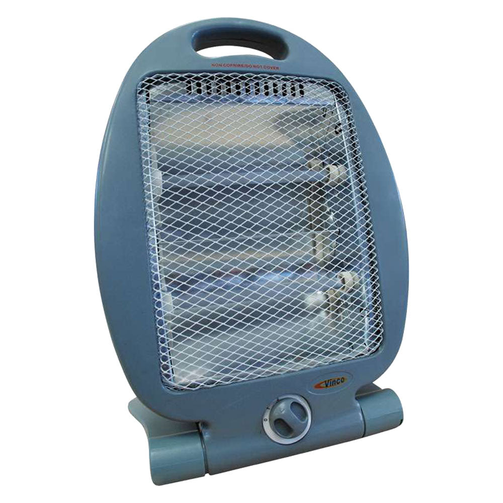 Con maniglia per presa. Griglia frontale di protezione e 2 tubi riscaldanti. Selettore 400/800 W.