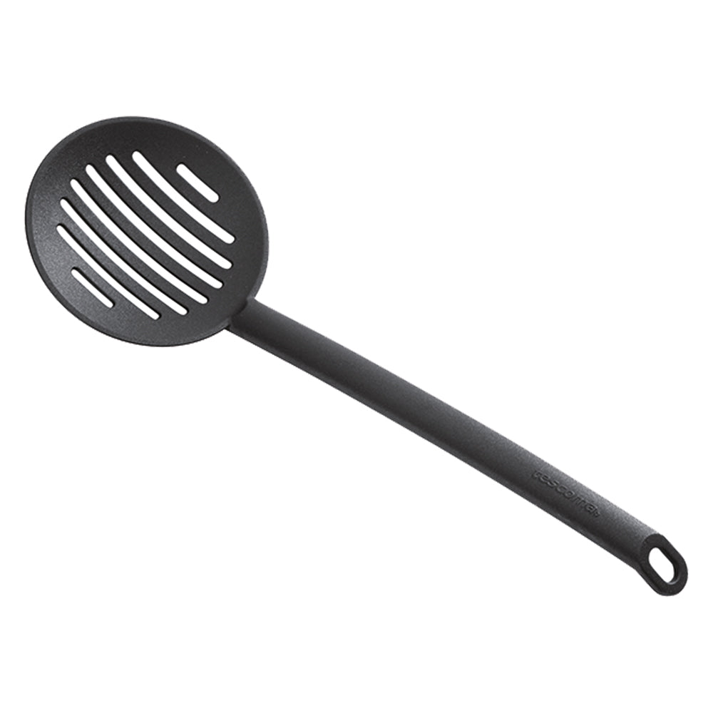 In nylon. Particolarmente indicata per pentole con rivestimento anti-aderente. Non assorbe odori, è particolarmente resistente all'attacco degli acidi alimentari. Specifica per scolare olio o acqua da pietanze.