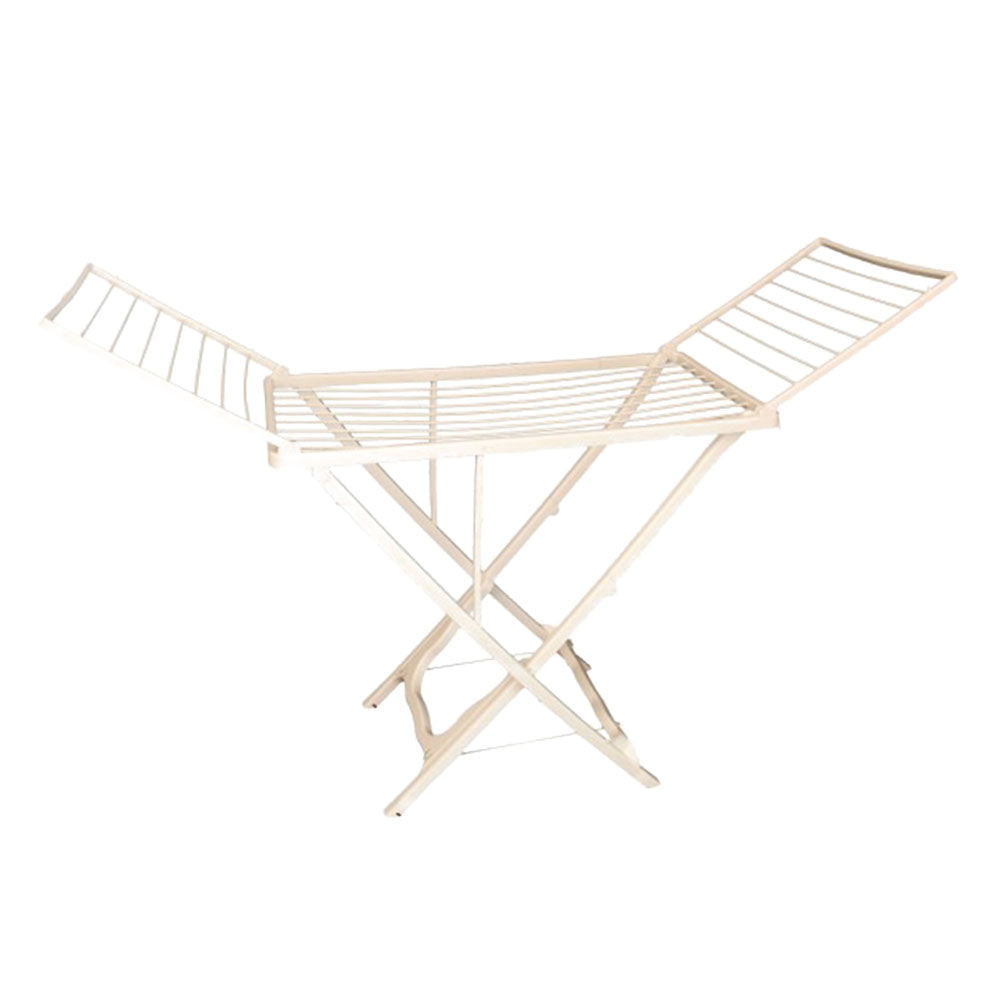 Telaio in resina riciclata, ali richiudibili e sistema di blocco per mantenimento chiusura. Supporti per bucati pesanti. Adatto per utilizzo interno ed esterno. Colore bianco. Dimensioni: cm. 170x90xh.115 (lxpxh).