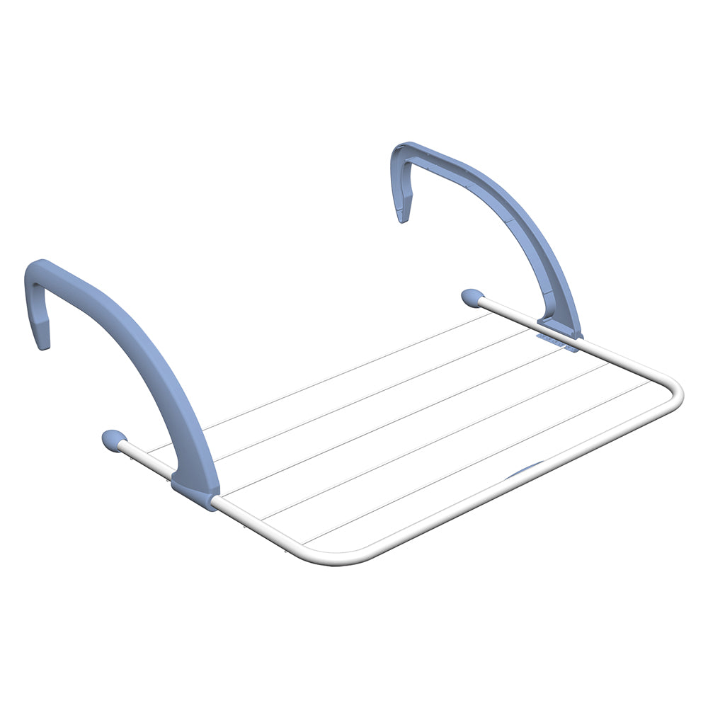 Per radiatori. Griglia in acciaio verniciato e braccia in resina estremamente robuste con agganci regolabili. I metri indicati si riferiscono alla lunghezza totale del cavo disponibile per il bucato stendibile. Dimensioni cm. 52x34,5xh.18.