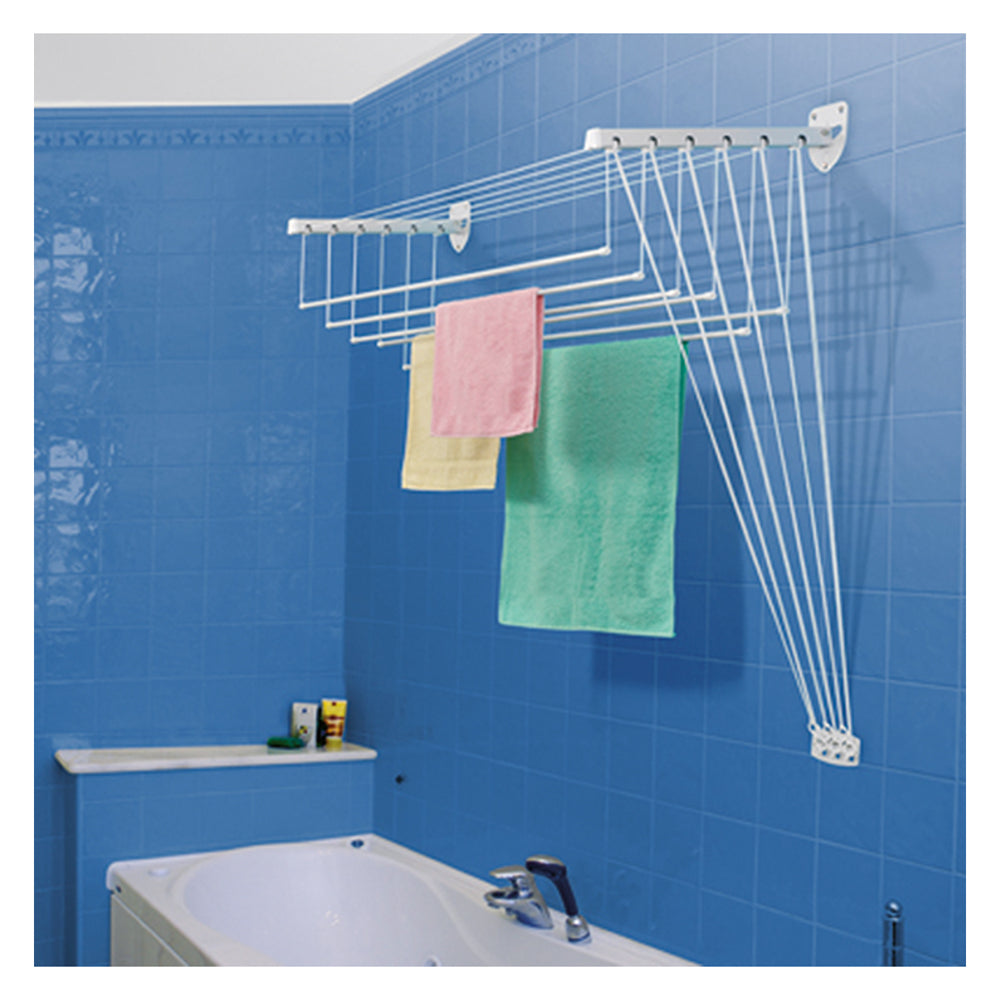 Stendibiancheria da parete e soffitto in acciaio con 6 barre resistenti. Le barre XXL evitano le pieghe sui capi asciutti. E' inclusa l'asticella saliscendi.