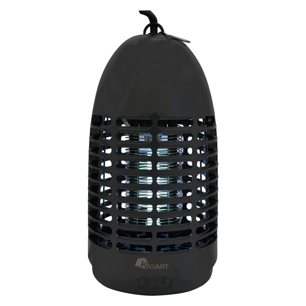 Realizzato in plastica ignifuga. Lampada a speciale illuminazione, capace di risultare un'irresistibile attrattiva per gli insetti. Adatta per essere appesa a soffitto. Una griglia protettiva impedisce di arrivare a toccare la lampada. Con cassetto raccogli insetti. Tensione 230V/50 Hz. Copertura fino a 25 mq. Colore nero.