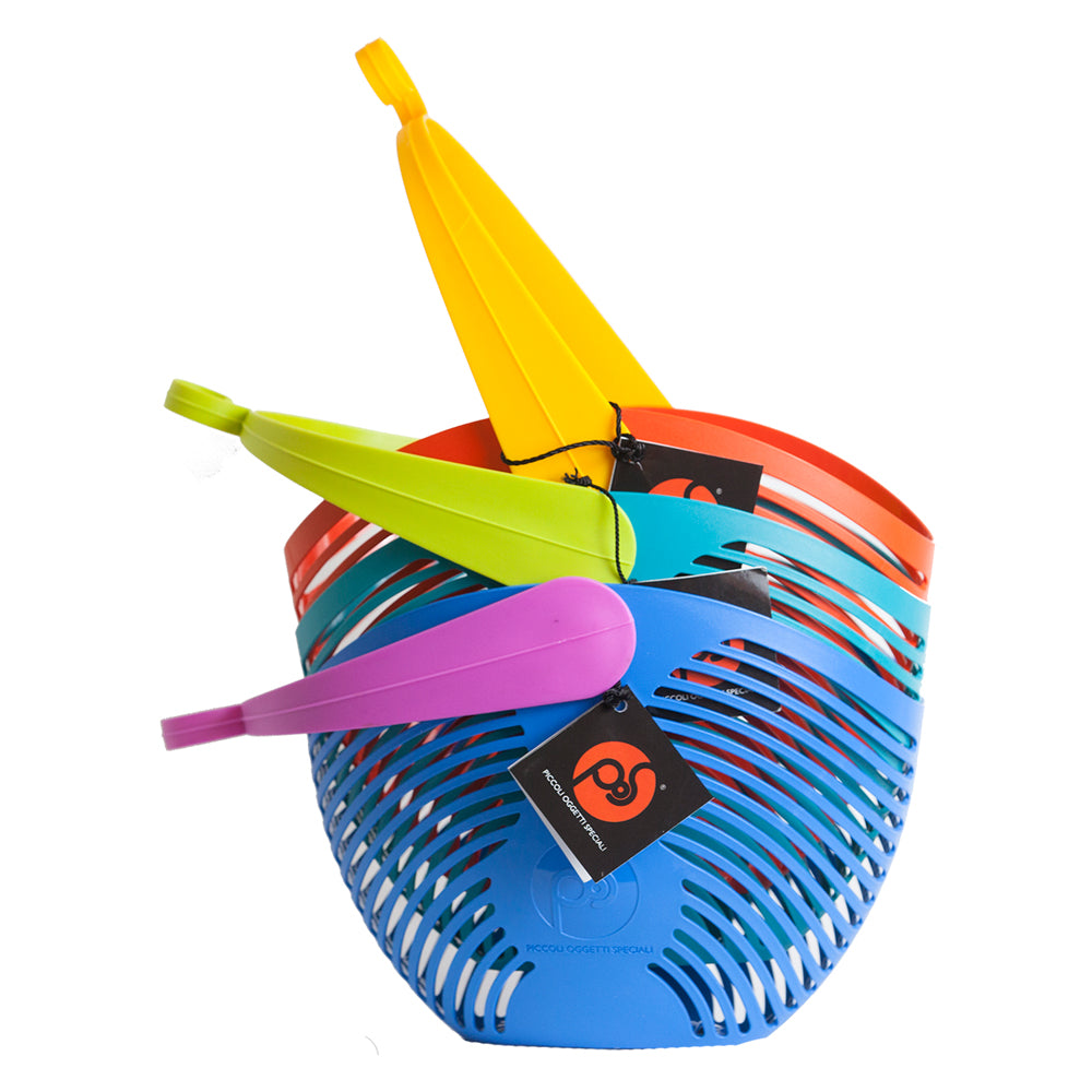 In plastica colorata. Leggero, funzionale e molto resistente è impilabile. Dotato di manico oscillante e gancio centrale. Dimensioni: cm. 27x17,8xh.19. Colori assortiti. - Confezione da 6 pezzi