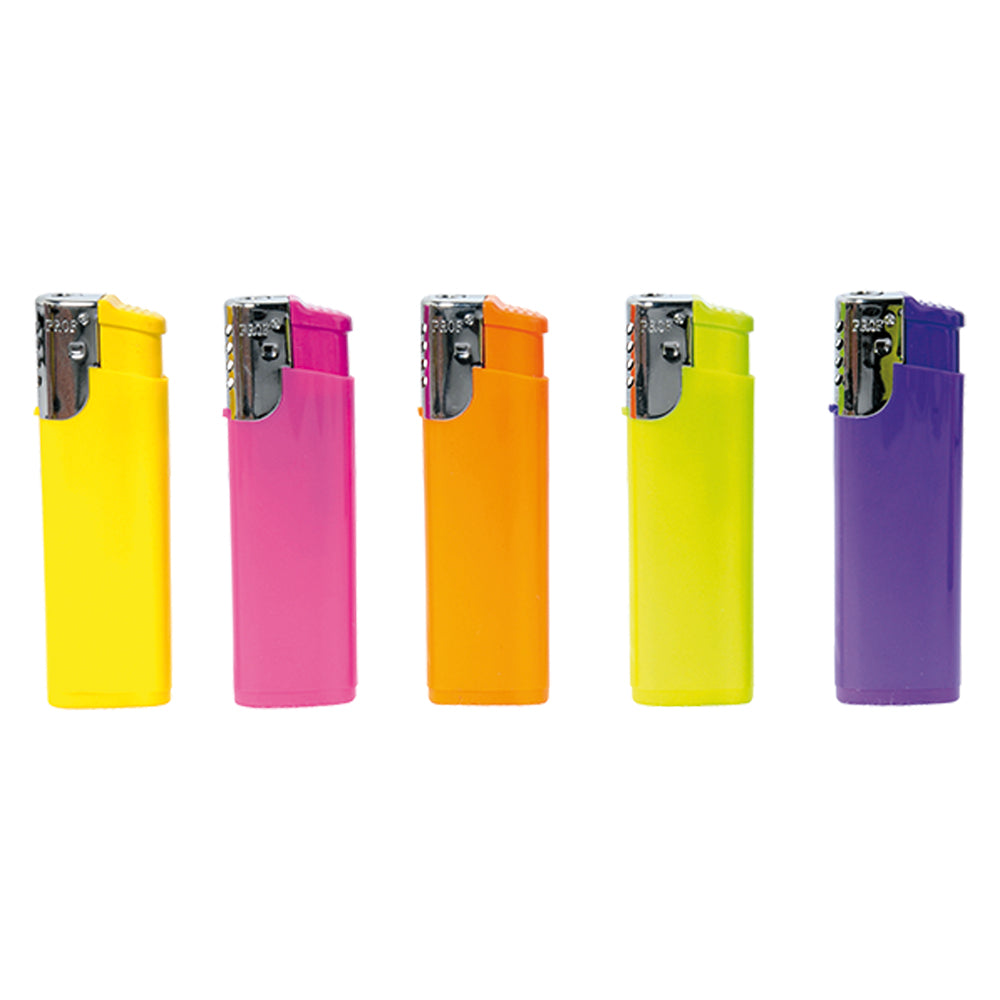 Elettronico, ricaricabile. A fiamma antivento turbo. Varie colorazioni, display in cartone. - Confezione da 25 pezzi