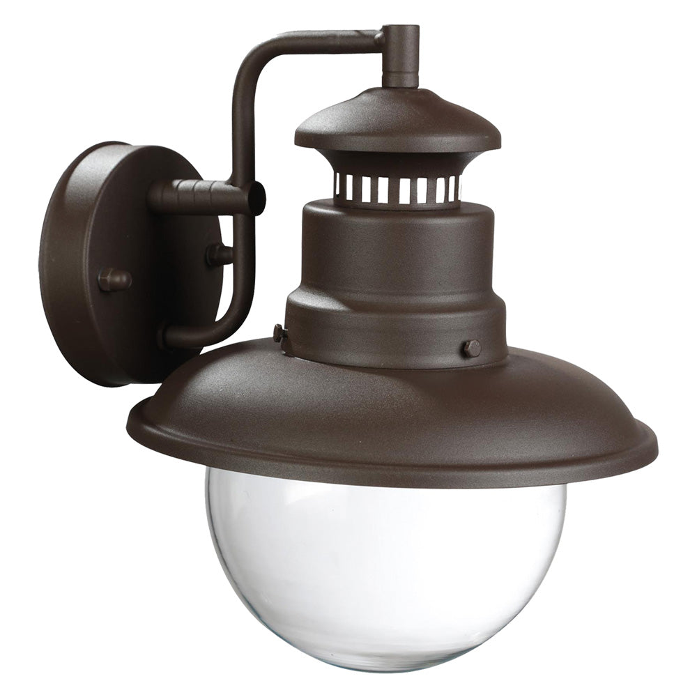 Struttura in pressofusione di alluminio. Diffusore in vetro trasparente. Trattamento anticorrosivo, verniciatura a polveri epossidiche. Adatta per lampade ad incandescenza e a risparmio energetico. Attacco E27, IP44. Potenza massima 60 watt.